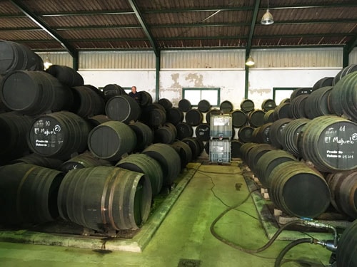 ボデガと呼ばれる醸造所で樽を3〜4段に積み上げ、一番下の段に最も長く熟成されたワイン、上の段にいくほど若いワインが入っています。